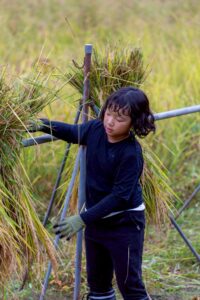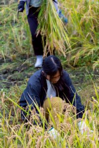 今回も刈った稲を束ね稲架にかけて2週間ほど天日と風によって乾燥させる『稲架かけ』までやらせていただきました。